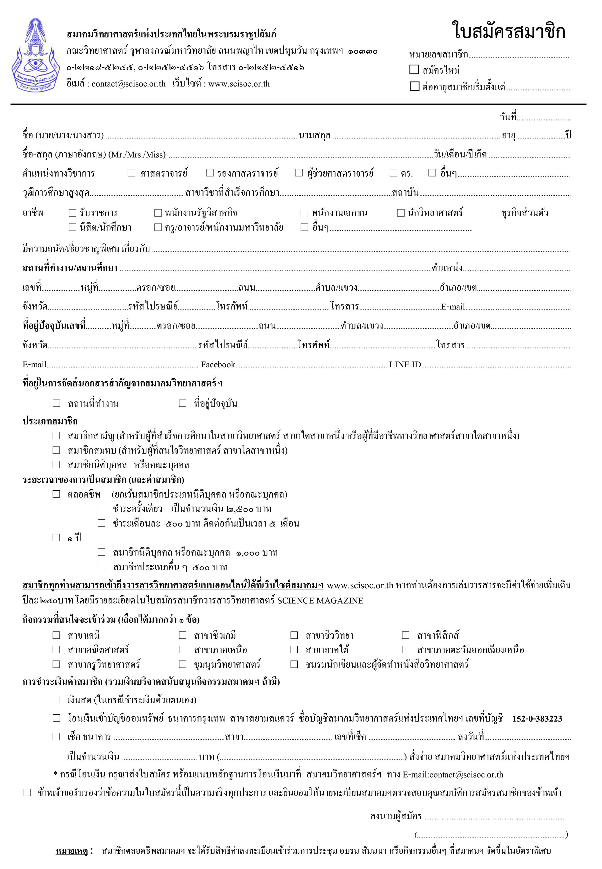 สมัครสมาชิกสมาคมวิทยาศาสตร์ฯ