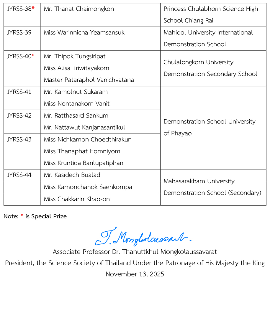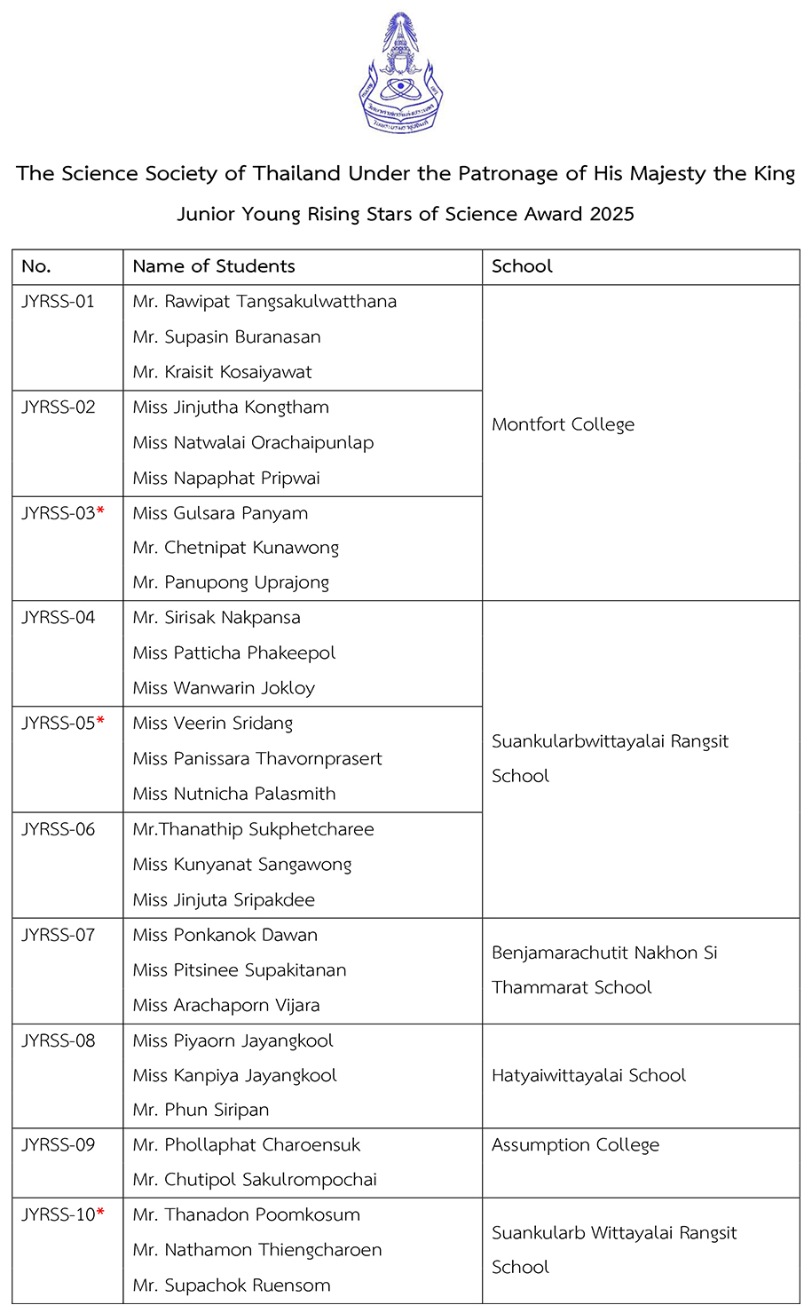 ประกาศรางวัล Junior Young Rising Stars of Science Award 2025